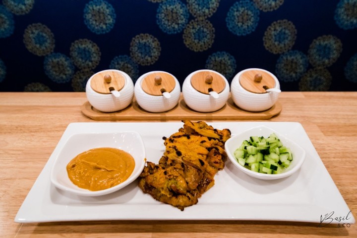 Chicken Satay (Thighs) served with peanut sauce and cucumber ajad (sweet vinegar)
